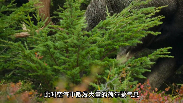 突然在远处的另一头公鹿出现了,正在约会中的公鹿神情紧张。现在是繁殖的季节,公鹿为了争夺配偶,它们即将展开一场实力比拼。历经了一个大吃特吃的夏季,每头公鹿全身都充满着力量,特别是颈部的肌肉发达,能够灵活掌控27公斤重的鹿角。