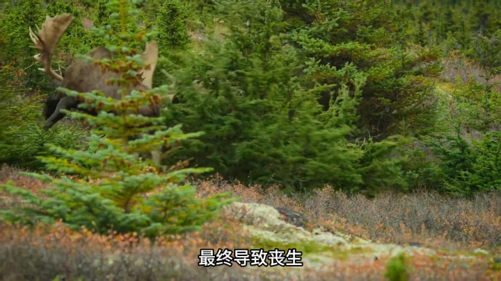 这头公鹿自然是赢得了雌鹿的交配权,来年的春天它会成为幼崽们的父亲。不过它们还有很长的路要走。洛基山脉的寒冬气温降到了零下40摄氏度,尽管暴风雪肆虐,但是驼鹿仍然在这个时候活跃,它们可以啃食树皮或者地衣来扛过这个寒冬。